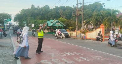 Tribratanewsacehselatan – Personel Polsek Tapaktuan Polres Aceh Selatan Polda Aceh melaksanakan kegiatan pengaturan lalu lintas (gatur pagi) di sejumlah titik