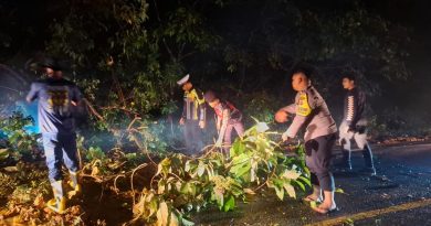 Personel Piket Polres Aceh Selatan Turun Langsung Tangani Pohon Tumbang