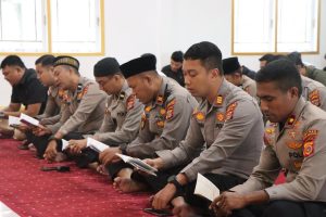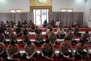 Tribratanewsacehselatan – Dalam rangka meningkatkan keimanan dan ketakwaan di hari pertama bulan suci Ramadan, jajaran Polres Aceh Selatan Polda Aceh melaksanakan kegiatan pembinaan rohani dan mental (Binrohtal) melalui pembacaan ayat suci Al-Qur’an Surat Yasin secara virtual. Kegiatan ini berlangsung khidmat di Masjid Babuttakwa Polres Aceh Selatan dan diikuti oleh para Pejabat Utama (PJU) serta personel, Kamis, 19 Februari 2026.