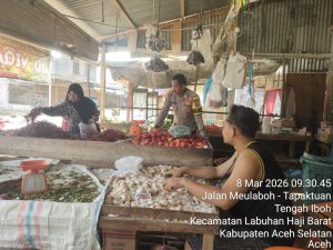Tribratanewsacehselatan – Dalam rangka menjaga situasi keamanan dan ketertiban masyarakat (kamtibmas) tetap kondusif selama bulan suci Ramadhan, Bhabinkamtibmas Polsek Labuhanhaji Barat Polres Aceh Selatan Polda Aceh melaksanakan kegiatan sambang kepada para pedagang sayur di wilayah Kecamatan Labuhanhaji Barat, Minggu, 8 Maret 2026.
