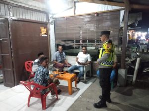 Bhabinkamtibmas Polsek Labuhanhaji Intensifkan Patroli Malam, Sambangi Warung Warga dan Sampaikan Himbauan Kamtibmas