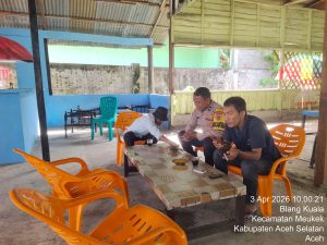 Tribratanewsacehselatan – Dalam rangka memperkuat kedekatan dengan masyarakat, Bhabinkamtibmas Polsek Meukek Polres Aceh Selatan Polda Aceh melaksanakan kegiatan sambang humanis melalui ngopi bareng bersama warga di salah satu warung kopi di wilayah binaannya. Kegiatan ini menjadi wadah efektif untuk membangun komunikasi yang harmonis sekaligus menciptakan suasana yang akrab antara Polri dan masyarakat, Jumat, 3 April 2026.