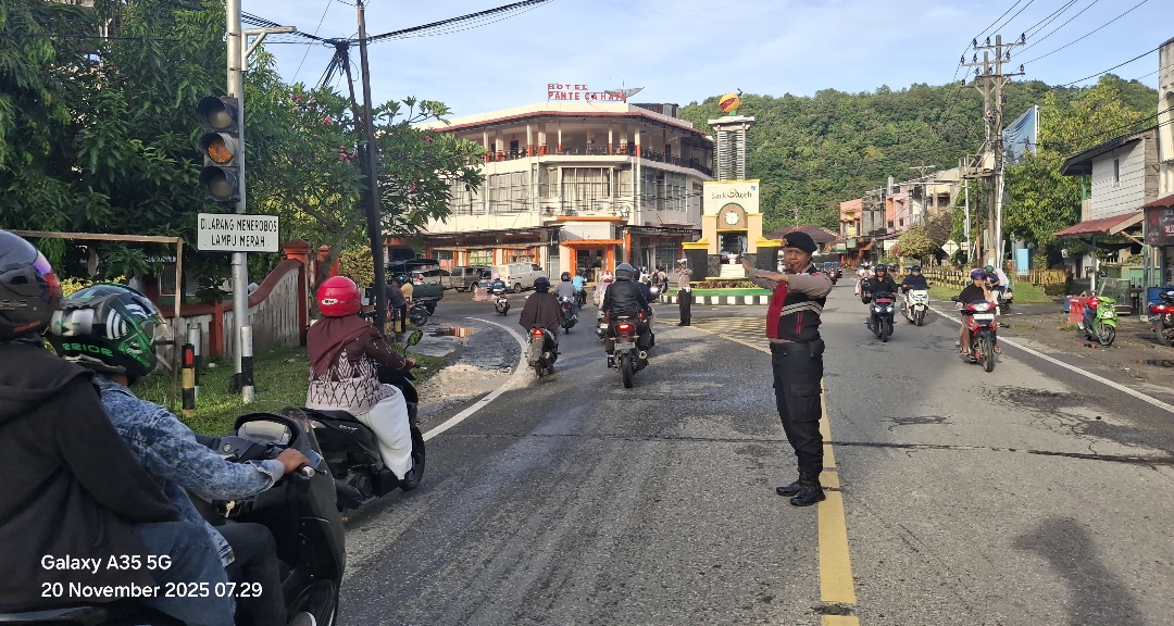Sat Samapta Polres Aceh Selatan Intensifkan Strong Point Pagi, Pastikan Kelancaran dan Keamanan Masyarakat