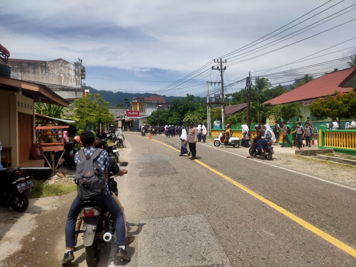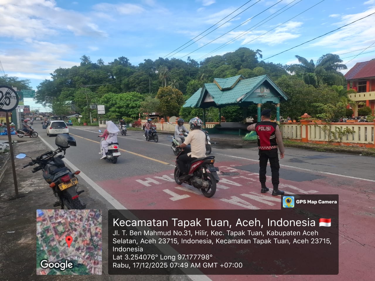 Tribratanewsacehselatan – Personel Polsek Samadua Polres Aceh Selatan Polda Aceh melaksanakan kegiatan pengaturan lalu lintas (gatur) dan pengamanan di depan