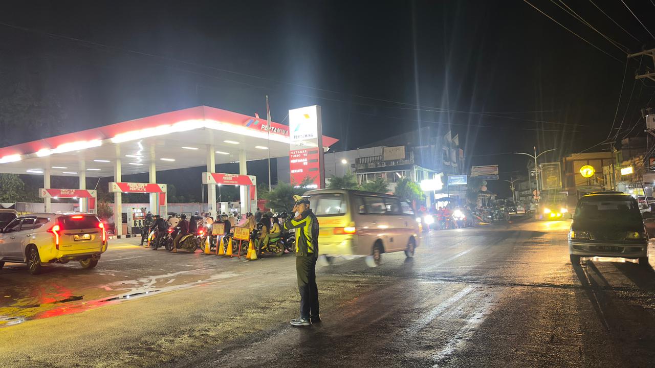 Satlantas Polres Aceh Selatan Laksanakan Pengamanan dan Pengaturan Lalu Lintas di SPBU Tapaktuan