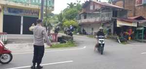Tribratanewsacehselatan – Personel Polsek Tapaktuan Polres Aceh Selatan Polda Aceh melaksanakan kegiatan pengaturan lalu lintas (gatur pagi) di sejumlah titik rawan kepadatan dan kemacetan pada jam sibuk pagi hari. Kegiatan ini merupakan bagian dari pelayanan prima Kepolisian kepada masyarakat guna memastikan kelancaran arus lalu lintas, sekaligus menciptakan rasa aman dan nyaman bagi pengguna jalan yang memulai aktivitas, Rabu, 11 Februari 2026.
