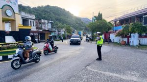 Tribratanewsacehselatan – Dalam upaya menjaga kelancaran arus lalu lintas di pagi hari, personel Satuan Lalu Lintas (Sat Lantas) Polres Aceh Selatan Polda Aceh secara rutin melaksanakan kegiatan pengaturan (gatur) di sejumlah titik rawan kemacetan. Kegiatan ini difokuskan pada persimpangan jalan utama, kawasan sekolah, serta pusat aktivitas masyarakat yang mengalami peningkatan volume kendaraan pada jam sibuk, Senin, 13 April 2026.