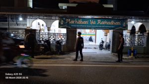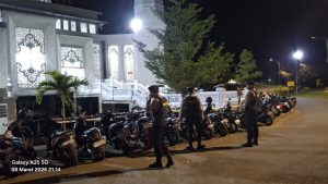 Tribratanewsacehselatan – Dalam rangka menciptakan situasi keamanan dan ketertiban masyarakat yang kondusif selama bulan suci Ramadhan, personel Satuan Samapta Polres Aceh Selatan melaksanakan kegiatan pengamanan sholat tarawih di sejumlah masjid yang berada di wilayah hukum Polres Aceh Selatan, Minggu, 8 Maret 2026.