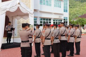 Tribratanewsacehselatan – Kapolres Aceh Selatan AKBP T. Ricki Fadlianshah, S.I.K., memimpin langsung upacara serah terima jabatan (sertijab) Kabag SDM, Kasat Narkoba serta sejumlah Kapolsek jajaran yang berlangsung di lapangan apel Polres Aceh Selatan. Kegiatan tersebut dihadiri oleh para Pejabat Utama (PJU), para Kapolsek jajaran, perwira, serta seluruh personel Polres Aceh Selatan. Pelaksanaan sertijab ini berlangsung dengan khidmat dan penuh makna sebagai bagian dari pembinaan organisasi di lingkungan Polri, Selasa, 17 Maret 2026.