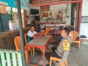 Ngopi Pagi, Bhabinkamtibmas Polsek Kluet Utara Sambangi Warga Sampaikan Himbauan Kamtibmas
