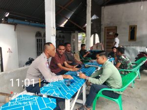 Tribratanewsacehselatan – Dalam suasana santai dan penuh keakraban, Bhabinkamtibmas Polsek Labuhanhaji Barat Polres Aceh Selatan Polda Aceh melaksanakan kegiatan sambang ke masyarakat dengan cara “ngopi bareng” bersama warga. Kegiatan ini menjadi sarana efektif dalam mempererat hubungan antara Polri dan masyarakat sekaligus menciptakan komunikasi yang lebih terbuka, Rabu, 8 April 2026.