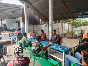 Ngopi Santai, Bhabinkamtibmas Polsek Labuhanhaji Barat Sampaikan Himbauan Kamtibmas dan Serap Aspirasi Warga