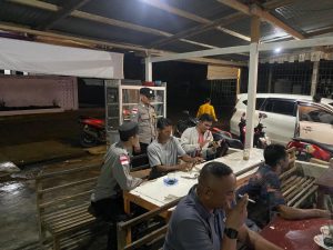 Patroli malam, Polsek Bakongan Timur sambangi masyarakat di warung kopi dan sampaikan himbauan kamtibmas