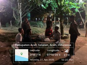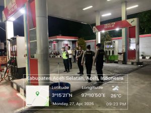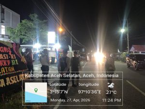 Tribratanewsacehselatan – Guna menciptakan situasi keamanan dan ketertiban masyarakat (kamtibmas) yang aman dan kondusif, personel Satuan Samapta Polres Aceh Selatan Polda Aceh terus mengintensifkan kegiatan patroli malam hari di sejumlah titik keramaian. Sasaran patroli meliputi SPBU, Ruang Terbuka Hijau (RTH), serta lokasi-lokasi yang menjadi pusat aktivitas masyarakat, khususnya pada jam-jam rawan, Senin, 27 April 2026.