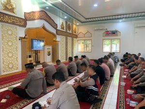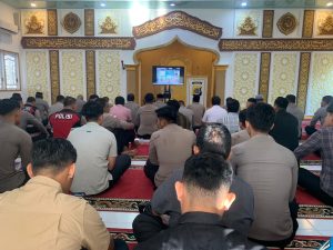 Tribratanewsacehselatan — Dalam rangka membentuk personel Polri yang beriman, bertakwa, dan berkarakter kuat, Polres Aceh Selatan Polda Aceh melaksanakan kegiatan Pembinaan Rohani dan Mental (Binrohtal) secara rutin melalui Zoom Meeting bertempat di Masjid Babuttaqwa Polres Aceh Selatan, Kamis, 29 Januari 2026.