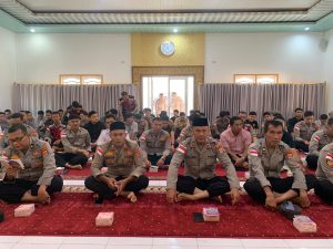 Pembinaan rohani dan mental diisi dengan pembacaan Surah Yasin, tausiah, serta doa bersama yang dipimpin oleh Ustad Khairul Rafiqi, Lc., M.A. Kegiatan ini menjadi sarana pembinaan spiritual guna meningkatkan keimanan sekaligus memperkokoh mental personel dalam menjalankan tugas kepolisian yang penuh tantangan.