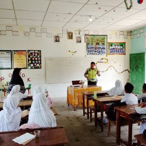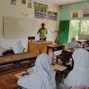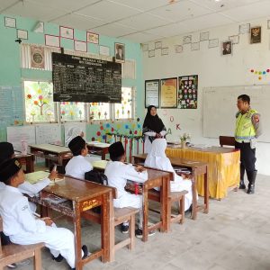 Tribratanewsacehselatan – Dalam rangka menanamkan kesadaran tertib berlalu lintas sejak usia dini, Satlantas Polres Aceh Selatan Polda Aceh melaksanakan kegiatan Polisi Saweu Sikula dengan memberikan sosialisasi kepada murid-murid MIN 9 Aceh Selatan, Desa Payo Nan Gadang, Kecamatan Samadua. Kegiatan ini dimulai pukul 09.30 WIB dan berlangsung dengan penuh antusias dari para siswa, Senin, 6 April 2026.