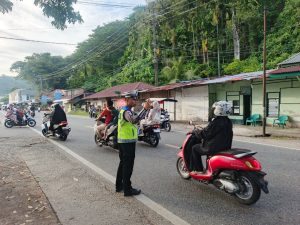 Dengan penuh kesigapan dan humanis, personel Polantas membantu menyeberangkan pejalan kaki, mengurai antrean kendaraan, serta memberikan imbauan kepada pengendara agar tetap mematuhi aturan lalu lintas. Masyarakat juga diingatkan untuk selalu menggunakan helm, tidak melawan arus, serta mengutamakan keselamatan selama berkendara.