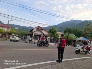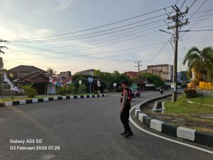 Tribratanewsacehselatan – Satuan Samapta Polres Aceh Selatan Polda Aceh melaksanakan kegiatan pengaturan lalu lintas (gatur pagi) di sejumlah titik rawan kepadatan pada jam sibuk pagi hari. Kegiatan ini merupakan bentuk pelayanan prima kepolisian kepada masyarakat guna mendukung kelancaran aktivitas warga, khususnya pada jam berangkat kerja dan jam masuk sekolah, Selasa, 3 Februari 2026.