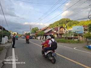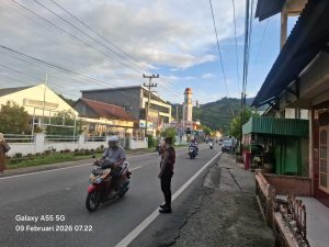 Tribratanewsacehselatan – Satuan Samapta Polres Aceh Selatan Polda Aceh melaksanakan kegiatan pengaturan lalu lintas (gatur pagi) secara rutin di jam sibuk pagi hari sebagai bentuk pelayanan prima kepada masyarakat. Kegiatan ini bertujuan untuk menjaga kelancaran arus lalu lintas serta memberikan rasa aman dan nyaman bagi masyarakat yang memulai aktivitas kerja, sekolah, dan kegiatan lainnya, Senin, 9 Februari 2026.