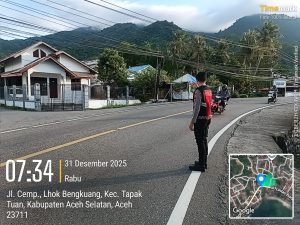 Tribratanewsacehselatan – Guna memberikan pelayanan prima kepada masyarakat serta menjaga keamanan dan ketertiban lalu lintas, Satuan Samapta Polres Aceh Selatan Polda Aceh secara konsisten melaksanakan kegiatan strong point pagi di sejumlah titik strategis pada jam sibuk pagi hari. Kegiatan ini menjadi rutinitas harian sebagai bentuk kehadiran Polri di tengah aktivitas masyarakat, Rabu, 31 Desember 2025.