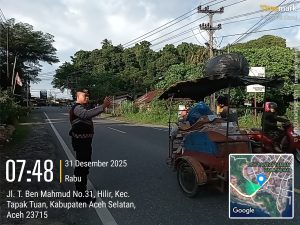 Tribratanewsacehselatan – Guna memberikan pelayanan prima kepada masyarakat serta menjaga keamanan dan ketertiban lalu lintas, Satuan Samapta Polres Aceh Selatan Polda Aceh secara konsisten melaksanakan kegiatan strong point pagi di sejumlah titik strategis pada jam sibuk pagi hari. Kegiatan ini menjadi rutinitas harian sebagai bentuk kehadiran Polri di tengah aktivitas masyarakat, Rabu, 31 Desember 2025.