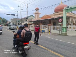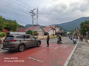 Tribratanewsacehselatan – Dalam rangka memberikan pelayanan terbaik kepada masyarakat, Sat Samapta Polres Aceh Selatan Polda Aceh melaksanakan kegiatan strong point pagi dengan menempatkan personel di sejumlah titik strategis pada jam sibuk pagi hari. Kegiatan ini bertujuan untuk menciptakan rasa aman dan nyaman bagi masyarakat yang memulai aktivitas, khususnya saat arus lalu lintas mulai meningkat, Jumat, 30 Januari 2026.