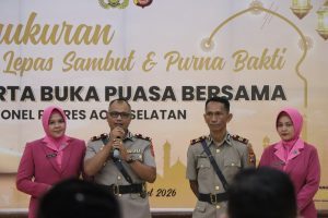 Tribratanewsacehselatan – Dalam suasana penuh kehangatan dan nuansa Ramadan, Polres Aceh Selatan Polda Aceh menggelar kegiatan syukuran lepas sambut Kabag SDM, Kasat Narkoba, serta Kapolsek jajaran yang dirangkaikan dengan purna bakti personel dan buka puasa bersama. Kegiatan ini menjadi momentum penting untuk mempererat silaturahmi, memperkuat soliditas, serta menumbuhkan semangat kebersamaan di lingkungan Polres Aceh Selatan, Selasa, 17 Maret 2026.