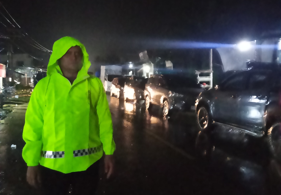 Tribratanewsacehselatan – Di tengah hujan deras pada malam hari, Kapolres Aceh Selatan AKBP T. Ricki Fadlianshah, S.I.K., tetap berada di