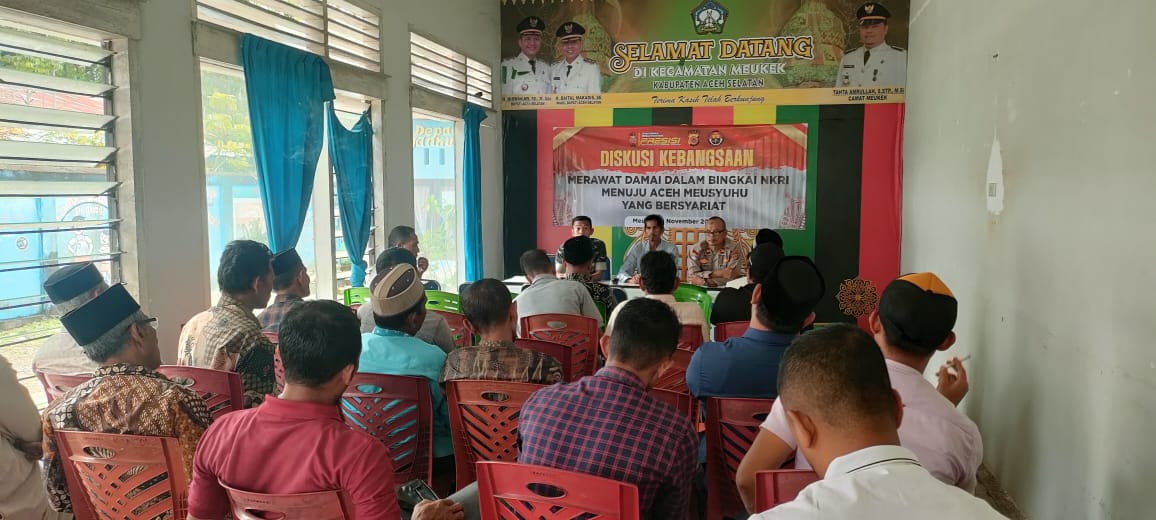 Tribratanewsacehselatan – Polsek Meukek Polres Aceh Selatan Polda Aceh menggelar Acara Diskusi Kebangsaan bertema “Merawat Damai dalam Bingkai NKRI Menuju