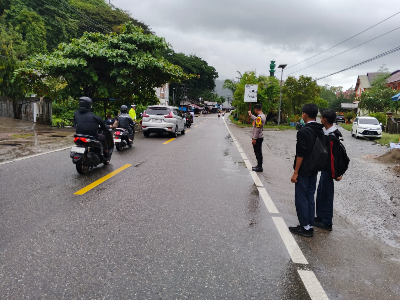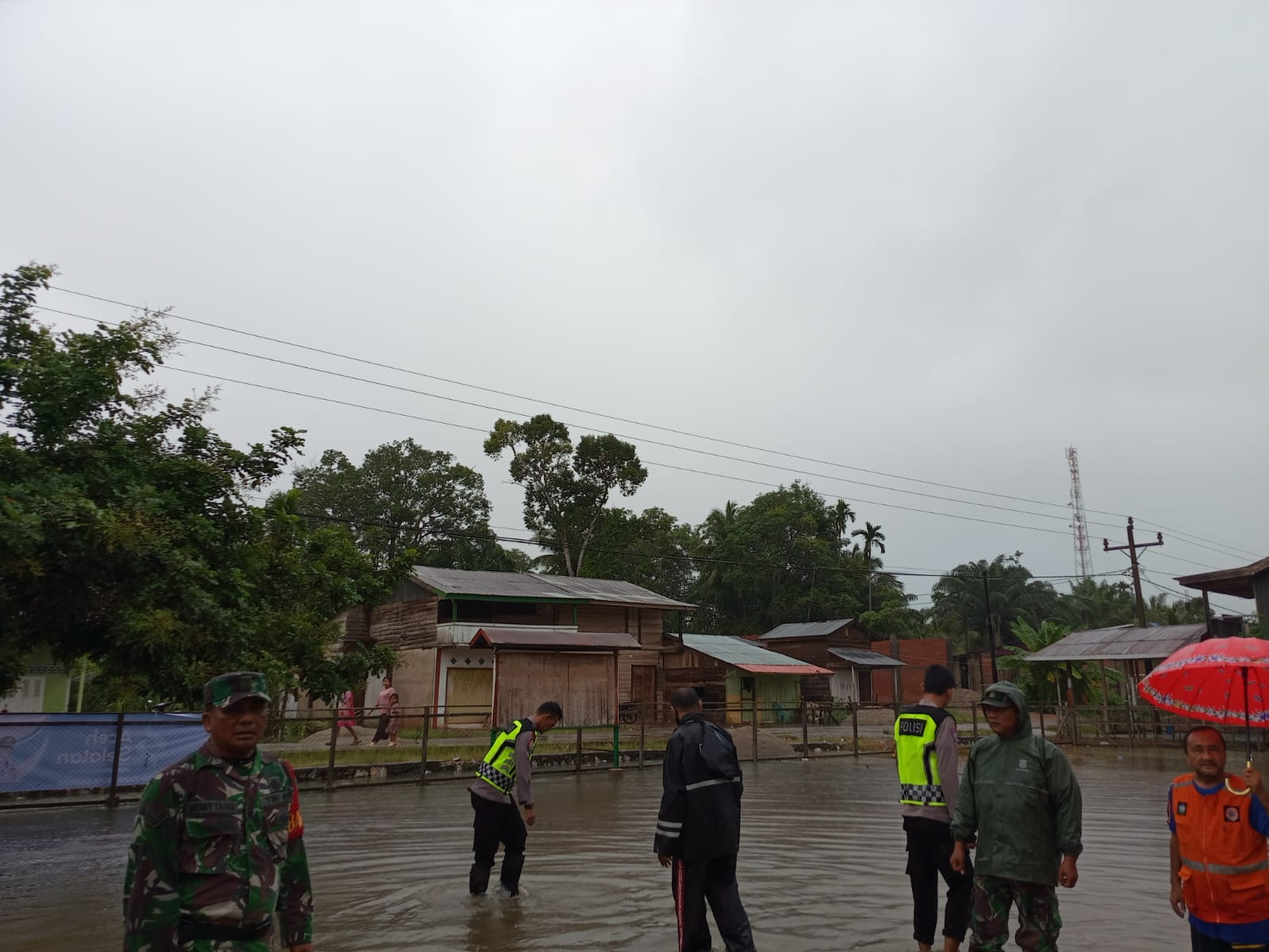 Tribratanewsacehselatan – Polsek Bakongan bersama unsur Forkopimcam turun langsung memantau kondisi banjir yang melanda sejumlah desa di Kecamatan Kota Bahagia.