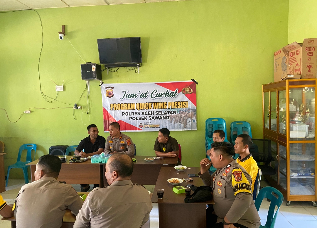 Tribratanewsacehselatan – Polsek Sawang Polres Aceh Selatan Polda Aceh kembali melaksanakan program Quickwins Presisi melalui kegiatan Jumat Curhat yang digelar