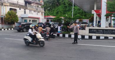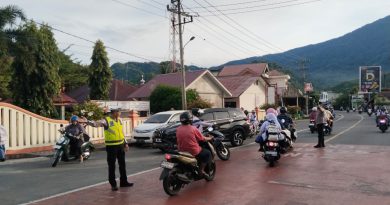 Tribratanewsacehselatan – Personel Polsek Tapaktuan Polres Aceh Selatan Polda Aceh melaksanakan kegiatan strong point pagi di sejumlah titik rawan kemacetan