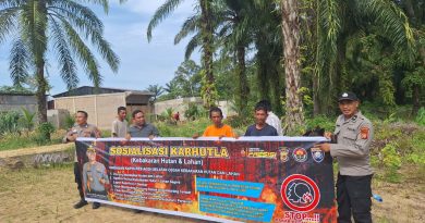 Tribratanewsacehselatan – Personel Polsek Trumon Polres Aceh Selatan Polda Aceh melaksanakan kegiatan sosialisasi pencegahan kebakaran hutan dan lahan (karhutla) kepada
