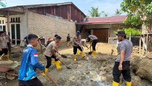 Tahap Lanjutan Pascabanjir, Polres Aceh Selatan Bersihkan Lingkungan Polsek, Rumah Warga dan Aliran Hulu Sungai