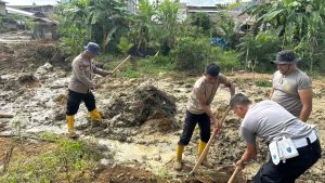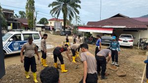 Selain di lingkungan Polsek dan rumah warga, kegiatan hari ini juga menyasar area sekitar aliran hulu sungai yang terdampak banjir. Personel membersihkan material kayu dan lumpur yang berpotensi menyumbat aliran air, sebagai langkah pencegahan agar tidak terjadi genangan apabila curah hujan kembali meningkat.