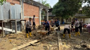 Tribratanewsacehselatan – Polres Aceh Selatan Polda Aceh kembali melanjutkan kegiatan gotong royong pascabanjir dengan fokus sasaran pembersihan di sekitar lingkungan Polsek Trumon, rumah-rumah warga, serta area sekitar aliran hulu sungai. Kegiatan ini merupakan tahap lanjutan pemulihan lingkungan pascabencana yang dilakukan secara bertahap, Rabu, 7 Januari 2026.